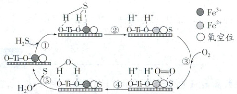 某团队合成了一种铁掺杂二氧化钛的新型催化剂,用于转化H₂S为单质S,提出的催化历程示意图如下。Nₐ是阿伏加德罗常数的值。下列说法正确的是(