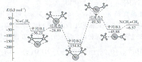 )A.总反应为Ni(s)+C₂H₆(g)→NiCH₂(s)+CH₄(g) $\Delta H$>0