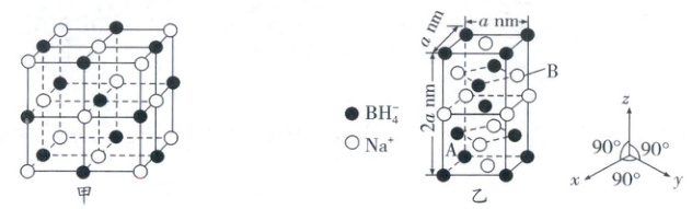 。(3)硼氢化钠在室温下是α型的立方晶体(如图甲所示),6.3 GPa下转变为四方晶体(如图乙所示)。