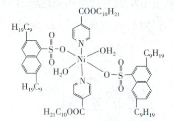 (溶液体积变化可忽略)。已知:“滤液 1”中$c(Cu^{2 + }) = 0.022\ mol·L^{-1}$,$c(Ni^{2 + }) = 0.042\ mol·L^{-1}$。(4)“选择萃取”中,镍形成如图的配合物。镍易进入有机相的原因有