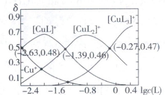 D.若 c{[CuL]⁺} = c{[CuL₃]⁺},则 2c{[CuL₂]⁺} < c{[CuL]⁺} + 3c{[CuL₃]⁺}