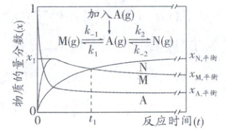 D.若${A(g)\to M(g)}$和${A(g)\to N(g)}$均为放热反应,升高温度则$x_{A,平衡}$变大