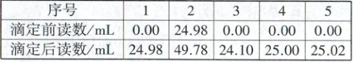 (3)为测定酸值,取 a g 样品配制 250.00 mL 溶液。移取 25.00 mL 溶液,用 c mol·L⁻¹ KOH - 乙醇标准溶液滴定至终点,重复实验,数据如下表: