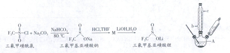 (2025·云南,16,14 分)三氟甲基亚磺酸锂(Mᵣ = 140)是我国科学家通过人工智能设计开发的一种锂离子电池补锂剂,其合成原理如下: