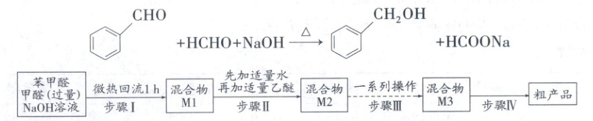(2025·浙江金华二模)某实验小组探究苯甲醛与甲醛在浓 NaOH 作用下制备苯甲醇,实验原理及流程如下: