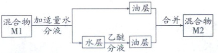 (5)混合物M1中含有水、苯甲醛、苯甲醇等,苯甲醛、苯甲醇虽然难溶于水,但它们的密度均约为1 g·cm⁻³,与水难以有效分层,因此不采用图中的操作。