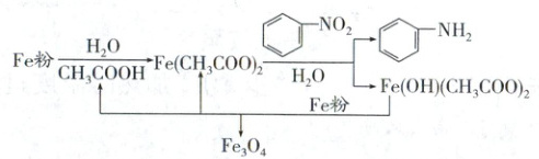 ,其中生成苯胺的总化学方程式为4$+9Fe+4H_2O\xrightarrow{醋酸}4+3Fe_3O_4$