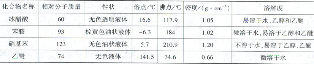 (4)苯胺易溶于乙醚且不发生反应,乙醚不易溶于水
