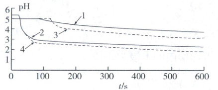 如图所示:其中曲线1表示无氧${BaCl_{2}}$溶液,曲线2表示有氧${BaCl_{2}}$溶液,曲线3表示无氧${Ba(NO_{3})_{2}}$溶液,曲线4表示有氧${Ba(NO_{3})_{2}}$溶液。