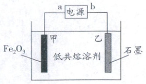 (5)工业上用电解法制备$Fe_{3}O_{4}$,工作原理如图所示,已知:低共熔溶剂可传导$O^{2-}$,阳极由$Cl^{-}$进行放电。