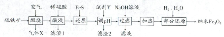 巩固训练1 (2025·湖南常德一模)以硫铁矿(主要成分是$FeS_{2}$,含少量$Al_{2}O_{3}$和$SiO_{2}$)为原料制备纳米$Fe_{3}O_{4}$的流程如下: