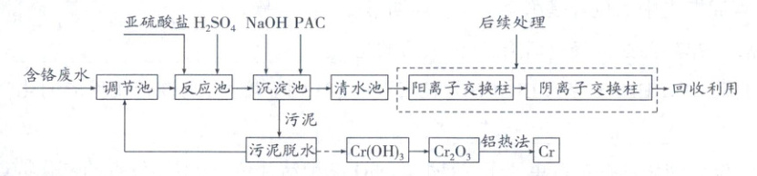 。(2)已知Cr³⁺浓度小于1.0×10⁻⁵mol·L⁻¹时沉淀完全。沉淀池的pH一般调整到8.0,此时Cr³⁺