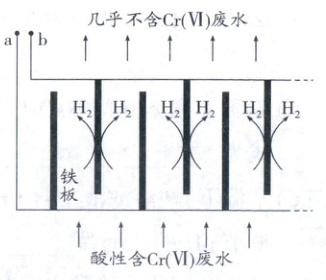 。Ⅱ.电解处理技术。用铁板作电极电解处理酸性含铬废水,将Cr(Ⅵ)转化为Cr(OH)₃沉淀(如图所示):