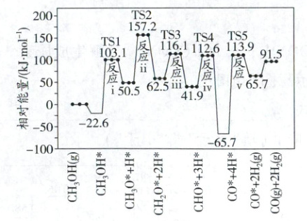 ③CH₃OH(g) ⇌ CO(g) + 2H₂(g) ΔH₃,该反应历程如图所示。