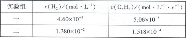 (2)对于反应 1,反应速率 $v(C_{2}H_{2})$ 与 $H_{2}$ 浓度 $c(H_{2})$ 的关系可用方程式 $v(C_{2}H_{2})=k[c(H_{2})]^{a}$ 表示 ($k$ 为常数)。$145^{\circ}C$ 时,保持其他条件不变,测定了不同浓度时的反应速率(如下表)。当 $v(C_{2}H_{2})=1.012×10^{-4}mol· L^{-1}· s^{-1}$ 时,$c(H_{2})=$