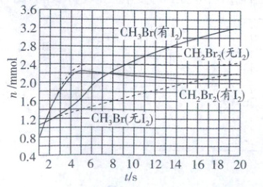 (2)5 s以后有I₂催化的CH₂Br₂的含量逐渐降低,有I₂催化的CH₃Br的含量陡然上升