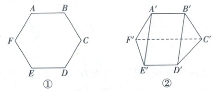 变式训练1. (2025·河南三门峡模拟)图①是边长为1的正六边形ABCDEF,将其沿直线FC折叠成如图②的空间图形A'E'F'-B'D'C',若A'E' = $\frac{3}{2}$,则几何体A'E'F'-B'D'C'的体积为 (