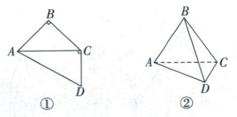 变式训练3. (多选)(2025·黑龙江佳木斯模拟)如图①所示,在四边形ABCD中,∠ABC = ∠ACD = $\frac{\pi}{2}$,∠CAD = $\frac{\pi}{6}$,AB = BC = 2$\sqrt{6}$.如图②所示,把△ABC沿AC边折起,使点B不在平面ACD内,连接BD.则下列选项正确的是 (