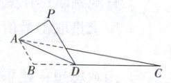 如图,在△ABC中,AB⊥BC,BC = 3AB = 3,D是BC上一点,且BD = 1,将△BAD沿AD翻折,使得点B与点P重合,当动点P在平面ADC上的射影在△ADC内部及边界上时,动点P的轨迹长度为(