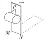 经典真题1(斜面连接体模型+空间三维问题+定角动态平衡)(2022·河北卷)如图,用两根等长的细绳将一匀质圆柱体悬挂在竖直木板的 $ P $ 点,将木板以底边 $ MN $ 为轴向后方缓慢转动直至水平,绳与木板之间的夹角保持不变,忽略圆柱体与木板之间的摩擦,在转动过程中(