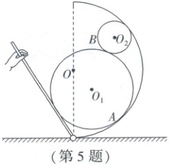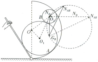 巩固训练5(定角动态平衡+辅助圆)(2025·山东威海调研)半圆弧槽固定在地面上,圆心为 $ O $,一根可动直杆一端固定在圆弧槽底端的铰链上并用手支撑,一个圆心为 $ O_1 $、质量分布均匀的 $ A $ 球和一个圆心为 $ O_2 $、质量分布均匀的 $ B $ 球叠放在如图位置,在可动直杆的支撑下保持静止状态,半圆弧槽半径 $ R $ 和 $ A $ 球半径 $ R_1 $、$ B $ 球半径 $ R_2 $ 三者关系为 $ R > R_1 > R_2 $。将直杆逆时针缓慢转动直至 $ B $ 球的圆心 $ O_2 $ 与半圆弧槽圆心 $ O $ 在同一水平线上,$ B $ 球始终只与 $ A $ 球和半圆弧槽接触,则直杆转动过程中(