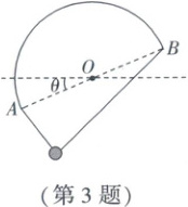 巩固训练3(恒变变模型+Y型动态平衡问题)(2025·重庆拔尖强基联盟模拟)一半圆环直径为 $ AB $,圆心为 $ O $,半圆环放置于竖直平面内,直径 $ AB $ 与水平方向的夹角为如图所示的 $ \theta $,$ A $、$ B $ 两端系着一根不可伸长的光滑轻绳,绳长大于直径 $ AB $,光滑绳子穿过一小球,现将半圆环在竖直平面内绕圆心 $ O $ 顺时针缓慢转过 $ 2\theta $。在此过程中,下列说法正确的是(