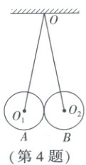 巩固训练4(定角动态平衡+四力平衡问题+辅助圆法)(2025·河南一模)两个完全相同的光滑小球 $ A $、$ B $ 和两根等长的轻质细绳,按如图所示方式悬挂处于静止状态,$ O_1 $、$ O_2 $ 分别为 $ A $、$ B $ 的球心。若从两球静止时的图示位置开始,在竖直平面内缓慢向右推 $ A $,直到 $ O_2 $ 与悬点 $ O $ 等高,且推力始终沿 $ O_1 $、$ O_2 $ 连线的方向,整个过程两小球始终在同一竖直面内,两根细绳始终伸直。则下列说法正确的是(