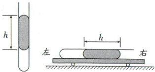 (1)若给玻璃管缓慢加热,使气体缓慢升温,水银柱上升到管口溢出了$ \frac{h}{2} $的水银,求此时气体温度$ T_1 $与大气温度$ T_0 $的比值(结果保留一位小数).