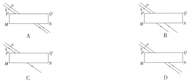 2. (2025·江西联考)(多选)如图,某同学测量玻璃砖的折射率时,用相互平行的两束不同单色光a、b,由空气射入平行玻璃砖,再由平行玻璃砖射入空气,下列图像可能正确的是(