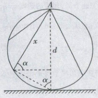 名师点拨:等时圆模型指的是物体从竖直圆环上最高点沿不同的光滑弦由静止开始滑到下端所用的时间相等。如图所示,物体从$A$点沿光滑弦从静止下滑,加速度$a=g\sin \alpha$,位移$x=d\sin \alpha$,可得运动时间$t=\sqrt{\frac{2x}{a}} =\sqrt{\frac{2d}{g}}$,从表达式可知时间与弦的倾角、长短无关。