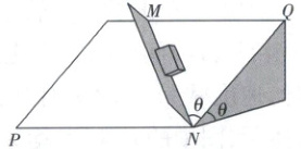 材料本应在下滑力的作用下沿斜面$QN$方向下滑,但由于挡板的存在阻止了运动,于是下滑力$mg\sin \theta$的一个分力与挡板$MN$的支持力平衡。