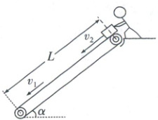 经典真题 1 (倾斜传送带模型 + 牛顿第二定律)(2021·辽宁卷)机场地勤工作人员利用传送带从飞机上卸行李。如图所示,以恒定速率 $v_1 = 0.6\ m/s$ 运行的传送带与水平面间的夹角 $\alpha = 37°$,转轴间距 $L = 3.95\ m$。工作人员沿传送带方向以速度 $v_2 = 1.6\ m/s$ 从传送带顶端推下一件小包裹(可视为质点)。小包裹与传送带间的动摩擦因数 $\mu = 0.8$。重力加速度 $g$ 取 $10\ m/s^2$,$\sin 37° = 0.6$,$\cos 37° = 0.8$。求: