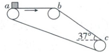 巩固训练 2 (组合传送带问题 + 划痕问题)(2025·湖南衡阳二模)如图所示,传送带的水平部分 $ab$ 长度 $L_1 = 10\ m$,倾斜部分 $bc$ 长度 $L_2 = 16.8\ m$,$bc$ 与水平方向的夹角为 $\theta = 37°$。传送带沿图示顺时针方向匀速率运动,速率 $v = 4\ m/s$,现将质量 $m = 2\ kg$ 的小煤块(视为质点)由静止轻放到 $a$ 处,之后它将被传送到 $c$ 点,已知小煤块与传送带间的动摩擦因数 $\mu = 0.2$,且此过程中小煤块不会脱离传送带,重力加速度大小 $g$ 取 $10\ m/s^2$,求: