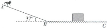 巩固训练 5(斜面模型 + 斜抛运动 + 临界极值问题)(2025·江西赣州一模)近期,我国展示了一款令人惊艳的军用机器狗,将给中国陆军带来降维打击的战斗力。在某次军事演习中,机器狗从山坡上滑下至水平面,随后跳跃过一障碍物,模型可简化为:如图所示,倾角为 $ 37° $ 斜面 $ AB $ 与水平面 $ BC $ 平滑连接,一长为 $ l = 1.6 \, m $、高为 $ h = 1.2 \, m $ 的矩形障碍物位于水平面上,距离斜面底端 $ B $ 有一定的距离,机器狗(可视为质点)从斜面顶端 $ A $ 由静止下滑,滑至速度为零时未到达障碍物处,此后机器狗斜向上跳起越过障碍物。已知斜面 $ AB $ 长 $ L = 10 \, m $,机器狗与斜面、水平面的动摩擦因数均为 $ \mu = 0.5 $,不计空气阻力,重力加速度 $ g $ 取 $ 10 \, m/s^2 $,$ \sin 37° = 0.6 $,$ \cos 37° = 0.8 $,求: