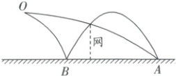 巩固训练 4(平抛运动 + 斜抛运动 + 临界问题)(2025·甘肃白银三模)(多选)2025 年 2 月 28 日,2025 年全国青少年网球积分排名赛(广州南沙站)在广州南沙国际网球中心收拍。若在某次网球比赛中,某运动员在 $ O $ 点击球,网球沿水平方向飞出,第一次网球落在己方场地上 $ B $ 点后弹跳起来,刚好擦网而过,落在对方场地的 $ A $ 点处,第二次网球沿水平方向飞出,直接擦网而过,恰好落在 $ A $ 点,如图所示。已知网球与水平场地的碰撞是弹性碰撞,不计网球与场地的碰撞时间,忽略空气阻力,则(