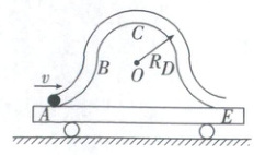 AD 解析:AC.小球从进入管道到离开管道的过程,水平方向动量守恒可得$mv = mv_1 + mv_2$,其中$v_1$是小球速度,$v_2$是小车速度;由机械能守恒定律可得$\frac{1}{2}mv^2 = \frac{1}{2}mv_1^2 + \frac{1}{2}mv_2^2$,小球恰好到达管道的最高点后,则小球和小车的速度相同为$v'$,由动量守恒定律可得$mv = 2mv'$,根据机械能守恒定律可得$\frac{1}{2}mv^2 = \frac{1}{2} × 2mv'^2 + mg × 2R$,解得$v_1 = v' = 2\sqrt{2gR}$, $v_2 = 0$,小球离开管道时,小车的速度大小为$0$,故A正确,C错误;B.由题意,小球与小车组成的系统在水平方向上不受外力,所以系统在水平方向动量守恒.小球从左端滑上小车到从右端滑离小车的过程中,小车水平方向先加速后减速,小球水平方向先减速后加速,在整个过程中小车一直向右运动,不会往复运动,故B错误;D.小球从$A$到$B$,根据动量守恒定律有$mv = 2mv_x$,根据能量守恒定律有$\frac{1}{2}mv^2 = \frac{1}{2}m(v_x)^2 + \frac{1}{2}mv_2^2 + mgR$,解得$v_x = v_y = \sqrt{2gR}$,根据动量定理可知$I = m\sqrt{(v - v_x)^2 + v_x^2} = 2m\sqrt{gR}$,故D正确.故选AD.