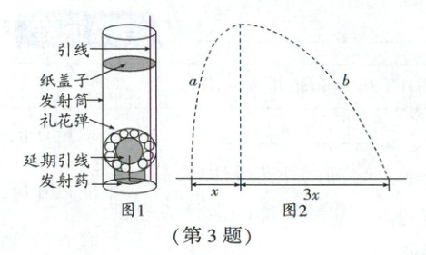 巩固训练3 爆炸模型+平抛运动 (2025·湖南示范性高中联考)(多选)2025年春节,我国产的烟花火遍全球,新的烟花研发设计层出不穷。现有某烟花筒的结构如图1所示,其工作原理为:点燃引线,引燃发射药燃烧发生爆炸,礼花弹获得一个竖直方向的初速度并同时点燃延期引线,当礼花弹到最高点时,延期引线点燃礼花弹并炸开形成漂亮的球状礼花。现假设某礼花弹在最高点炸开成$a$、$b$两部分,速度均为水平方向。炸开后$a$、$b$的轨迹图如图2所示。忽略空气阻力的作用,则(