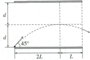 ③斜抛运动初速度方向与水平方向成$45°$角,竖直方向最大位移为$d$