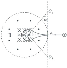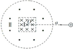 ④一带正电的粒子从II区外边界上a点沿正方形某一条边的中垂线方向进入磁场