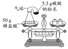 (2)碳酸钠与盐酸反应生成氯化钠、水和二氧化碳,生成的二氧化碳气体使气球鼓起,受到空气的浮力影响,天平向右倾斜