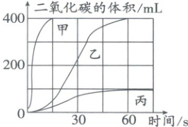 11. 实验室制备并收集二氧化碳,按下表进行实验,取等质量的同种大理石加入足量酸中(杂质不与酸反应),产生二氧化碳气体随时间变化曲线如图所示,下列说法错误的是(
