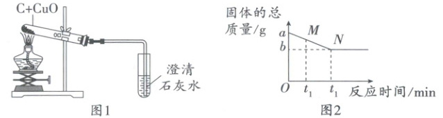 12. 将总质量为a g的木炭、氧化铜混合物装入如图1试管中并加热,充分反应。反应过程中,固体的总质量随反应时间的变化关系如图2所示。下列有关该实验的说法错误的是(