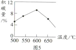 。②其他条件不变,催化剂表面的积碳量随温度变化如图5所示。温度低于600℃,催化剂表面积碳量增加的原因可能是