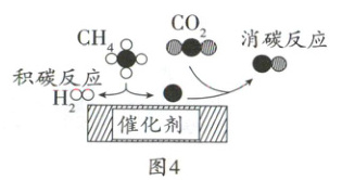 (6)CH₄与CO₂在催化剂作用下可得到合成气(CO和H₂),实现资源化利用。反应过程中催化剂表面还同时存在积碳反应和消碳反应,原理如图4所示。