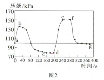 步骤④:打开两个弹簧夹,将两个注射器的活塞都拉回原位,再关闭两个弹簧夹,继续测量压强变化。装置内压强的变化如图2。