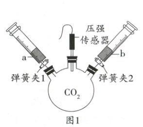 步骤②:两注射器中各吸入50mL澄清石灰水、50mL稀盐酸,再从中间瓶口通入CO₂气体将瓶装满,最后塞上带压强传感器的橡胶塞。