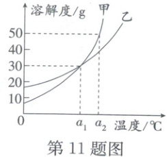 11. 如图是甲、乙两种物质的溶解度曲线。下列说法正确的是(