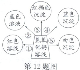 12. [情境题]某同学以氢氧化钙为主题,绘制了“多彩碱世界”的思维导图(如图)。下列说法正确的是(