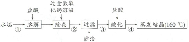 15. (5分)水垢的主要成分是$CaCO_{3}$、$Mg(OH)_{2}$,从水垢中制备氯化钙的主要流程如图。已知$Ca(OH)_{2}$与$MgCl_{2}$反应生成$Mg(OH)_{2}$和$CaCl_{2}$。