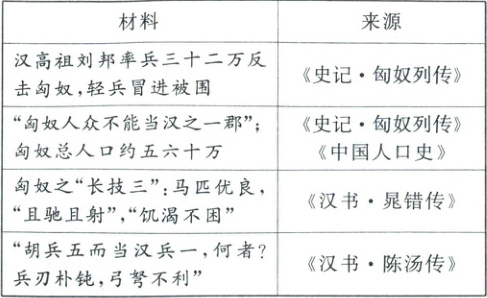 12. (2025 全国卷)根据下表所列材料可知,西汉初匈奴能够对汉朝构成严重威胁的主要原因是(